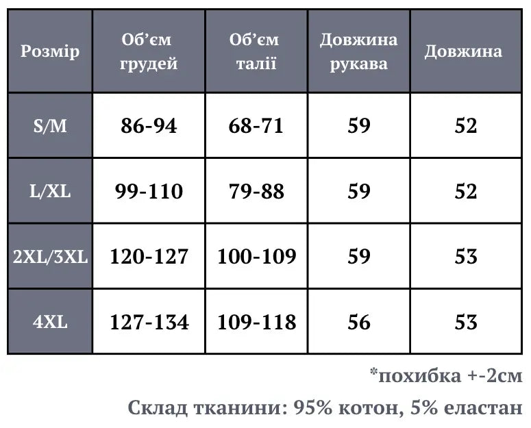- НАТУРАЛЬНА ТКАНИНА: 95% котону, 5% еластану